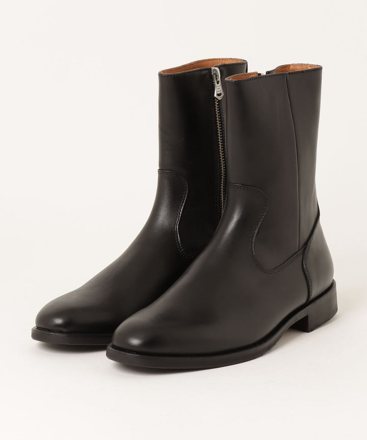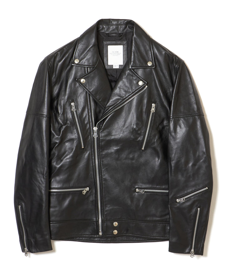 ブランドのアイコン的存在であるSPANISH LAMB LEATHER W BIKER JACKETを主役に据えたシンプルなコーディネート。インナーに白Tシャツを取り入れて、重くなりがちな印象に抜け感をプラス。