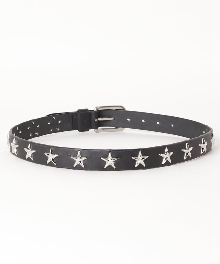 同じく白Tシャツで抜け感のあるメリハリを効かせ、STAR STUDDED BELTで媚びないアティテュードを演出。