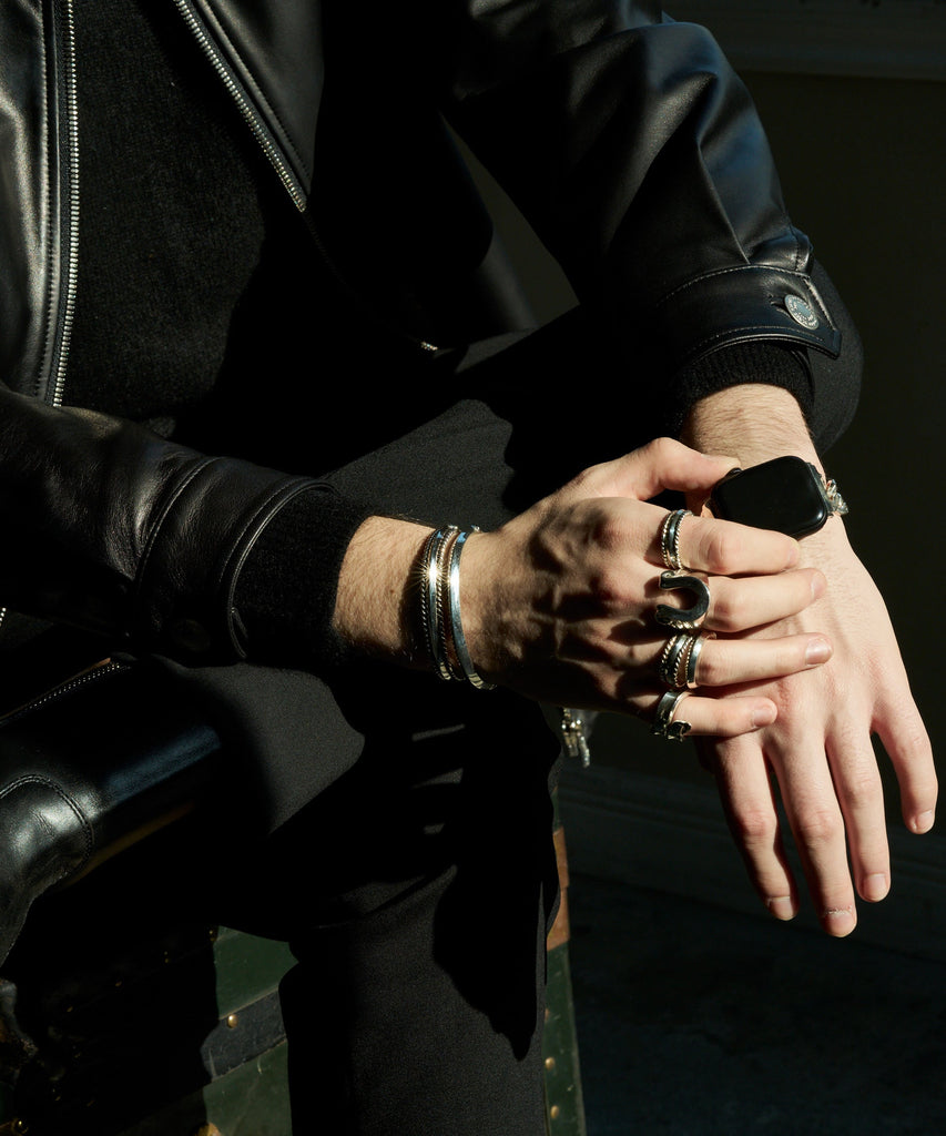 SILVER JEWELRY IS BOTH AN IDENTITY AND A TALISMAN アイデンティティーであり、お守りでもあるシルバージュエリー 黄昏時。腕時計に目をやると、日没が遅くなっていることを知った。長い冬も終盤にさしかかり、春がやってくる。なんだかワクワクしてしまうのは、私にとって春はコーディネートを思いっきり楽しめる季節だからなのかもしれない。洋服選びはいつもジュエリーを起点に考える。気候に合わせて装いを変えつつも、身に付けるものたちは変えない。なぜならば、それが私にとって”不変”のアイデンティティーであり、お守りでもあるからだ。 日常の何気ない瞬間に彩を添えるシルバージュエリー。 お気に入りのデバイスも自分流にカスタムするのがマイルール。 ずっと身に付けるものだからこそ、とことん拘ってみせる。 PYRAMID ROPE STUDS GUADALUPE SILVER BRACELET シンプルなデザインでジュエリー入門に最適。 単体では落ち着いた雰囲気に、複数組み合わせることで重厚な存在感へと変わっていく。 APPLE WATCH LINK CHAIN GRADATION SILVER BAND アップルウォッチ対応のシルバーチェーンバンドブレスレット。...