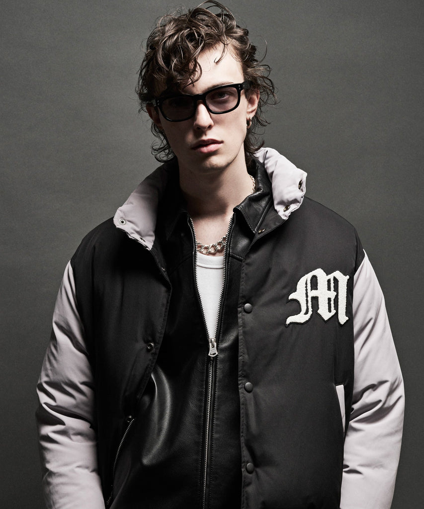 オーバーサイズにレザージャケットを着こなす、アバンギャルドなコーディネート。