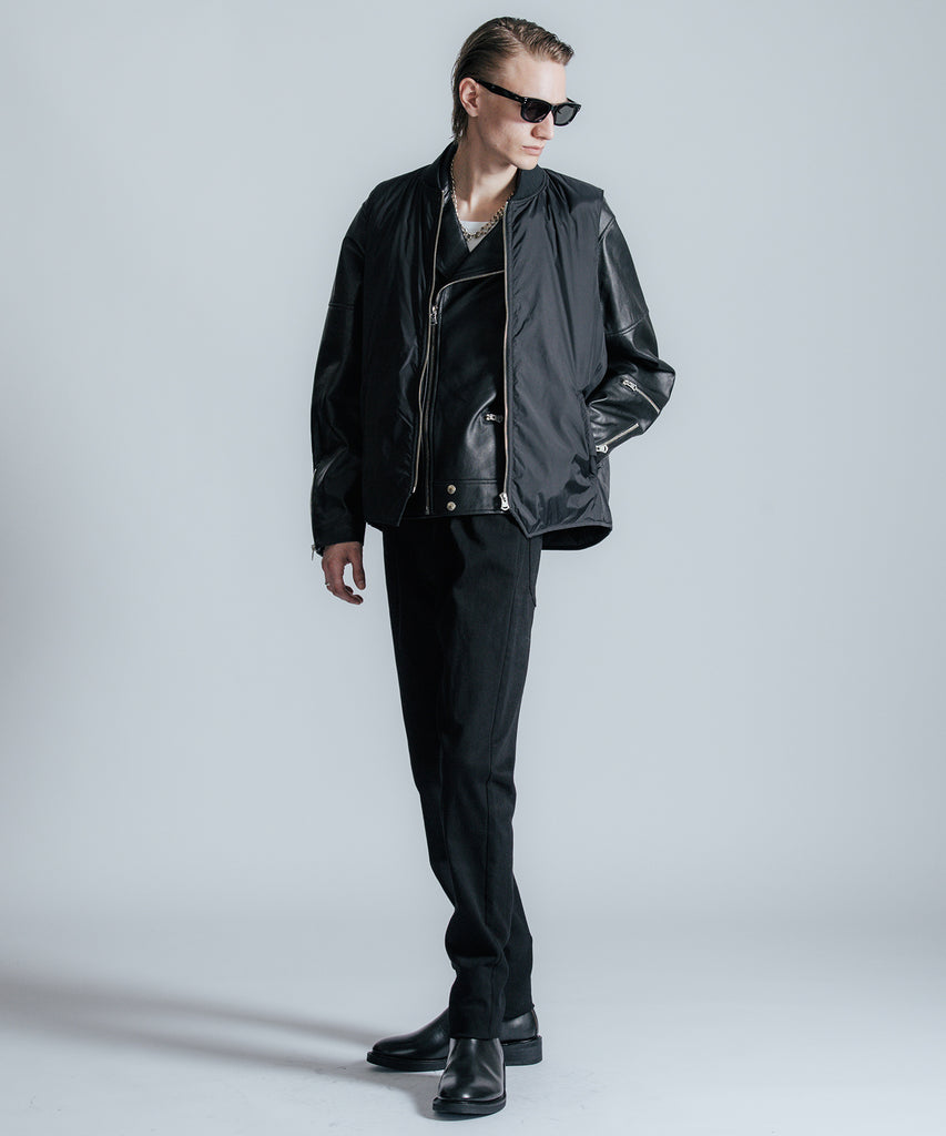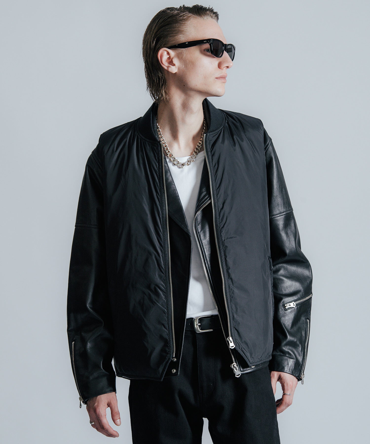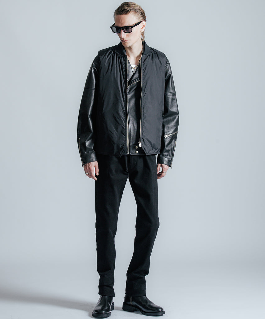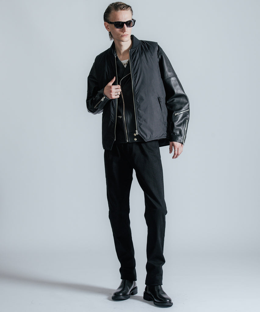 光沢を抑えたマットなナイロン素材を使用し、 シンプルな中にモード感を秘めたナイロンベストです。 軽やかで、無駄のないシルエットが都会的なスタイルにすっと馴染みます。 中綿には、保温性の高い高機能素材シンサレートを採用。 驚くほど軽く、かつ高い保温性を備えているため、アウターとしてもインナーとしても使いやすいバランスに仕上がっています。 TシャツやロンT、スウェットに重ねる春秋のレイヤードはもちろん、 冬にはアウターの中に仕込むことでスタイルの幅を広げてくれる、飽きのこない“仕立てのいい万能ピース”です。 ボタンやジップヘッドには、THE CRIMIEオリジナルのパーツを使用。 背面の首元には、ブランド哲学を体現するレザー製ダイアログロゴワッペンをリベットで配置しています。 軽さと機能を追求しながら、見た目の上品さも忘れない。 スタイルに奥行きを与える、静かな一手です。