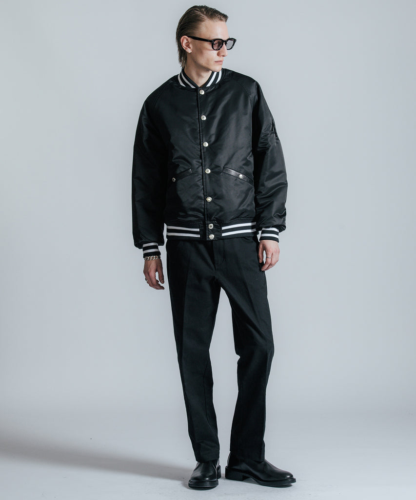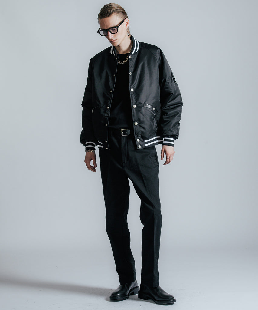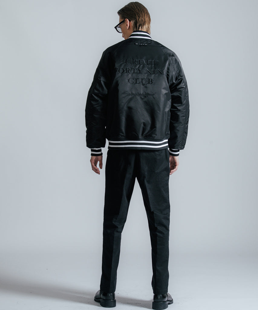 高機能中綿素材シンサレートを使用したこのスタジアムジャケットは、機能性とデザイン性を兼ね備え、優れた保温性と快適な着心地を提供します。 その洗練されたシルエットとディテールが、エレガントでありながら力強い印象を与え、デイリーコーディネートに新たな可能性を開きます。 袖と背中に施された同色刺繍がアクセントとなり、49とTHE CRIMIE 49 CLUBの刺繍が、歴史的な象徴性とブランドの精神を静かに表現しています。 これにより、シンプルなデザインでありながらも、強いメッセージを込めた一着に仕上がっています。 背面の首元には、レザー製のダイアログロゴワッペンを配置し、THE CRIMIEの美学と誇りを感じさせるディテールが光ります。 こだわりのオリジナルスナップボタンが、シンプルでありながら高級感を演出し、日常的に使えるラグジュアリー感を持つ一着に仕上げています。 このジャケットは、デザインに込められた深い意味と、優れた機能性が融合したアイテム。 49 CLUBの一員として、スタイルと信念を表現するためにふさわしい、洗練された選択です。