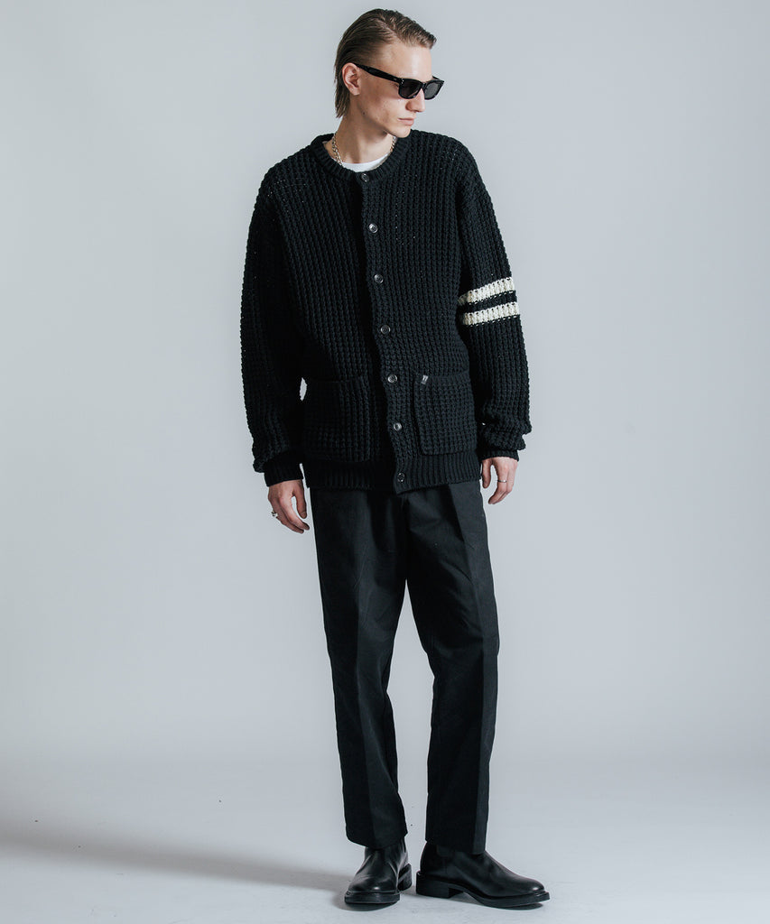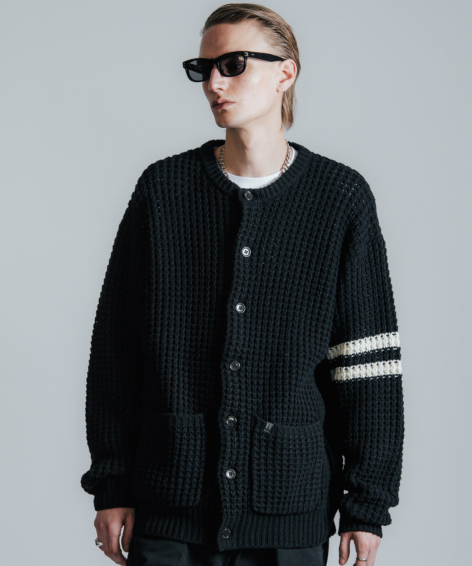 BIG WAFFLE BORDER KNIT CARDIGAN