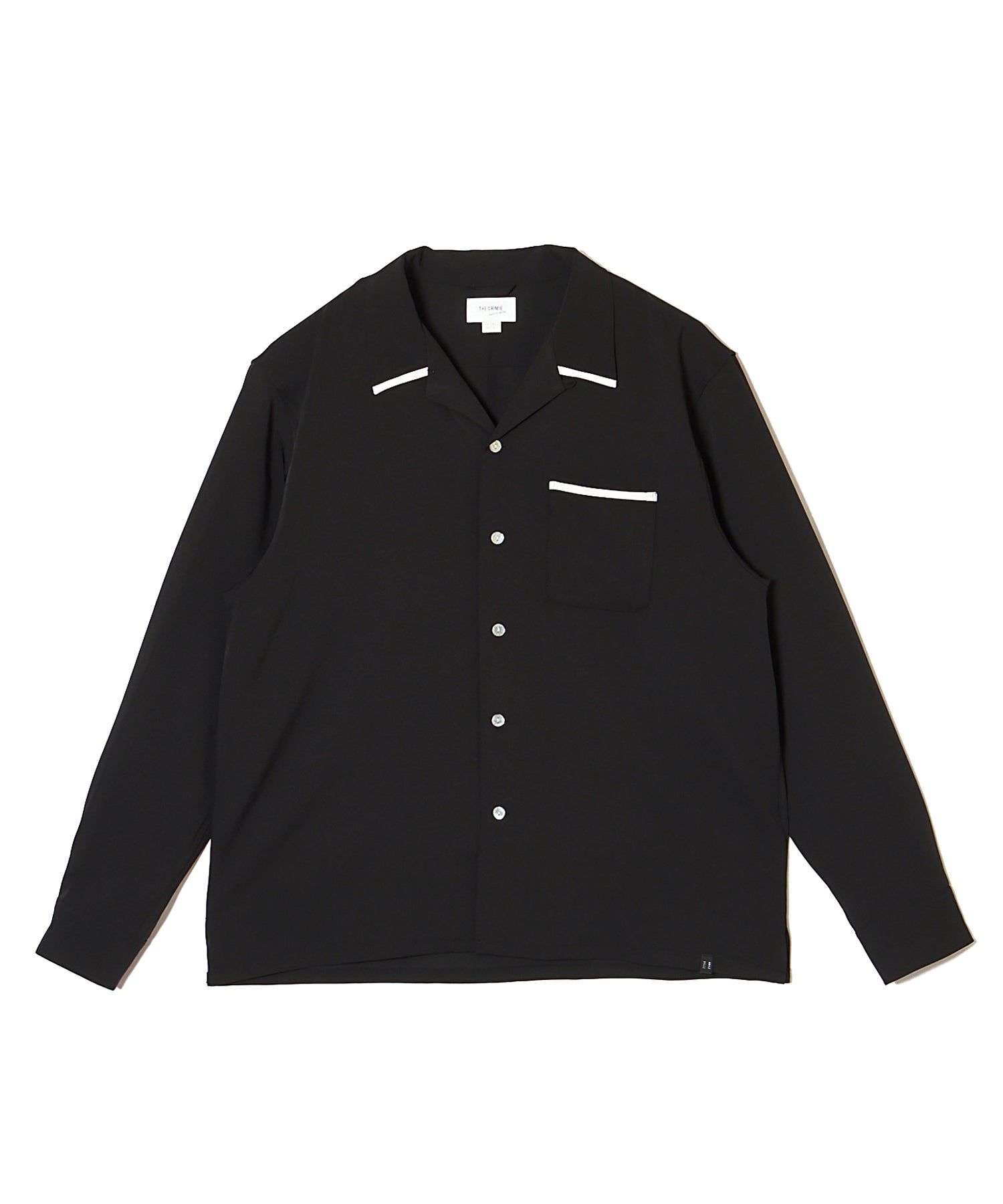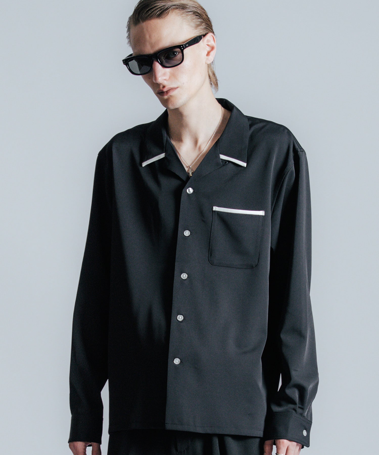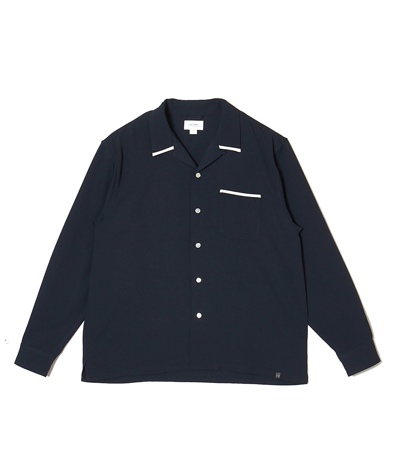 50年代のオープンカラーシャツをベースに、THE CRIMIEが独自の解釈で再構築した一着です。 バイカラーの配色やディテールにこだわりながら、今の時代に映えるバランスと空気感を追求しました。 軽やかなドレープ感を持つ素材は、優れた伸縮性と通気性を備えており、季節を問わず快適な着心地を実現します。 肌離れの良さとノンストレスな設計により、日常を少し上質に変える“軽やかなラグジュアリー”を体感いただけます。 襟先とポケット口に施されたさりげないバイカラーのアクセントが、シンプルな中に遊び心を添え、 現代的なモード感とクラシックのミックスを楽しめるデザインに仕上げています。 左裾と首元背面には、THE CRIMIEの哲学を象徴するレザー製ダイアログロゴワッペンを配置。 目立ちすぎず、静かに背中で語るディテールが、大人の品を引き立てます。 オリジナルの刻印入りボタンや縫製仕様まで、ブランドのクラフトマンシップを細部に凝縮。 スタイルの核としても、レイヤードのアクセントとしても活躍する一着です。