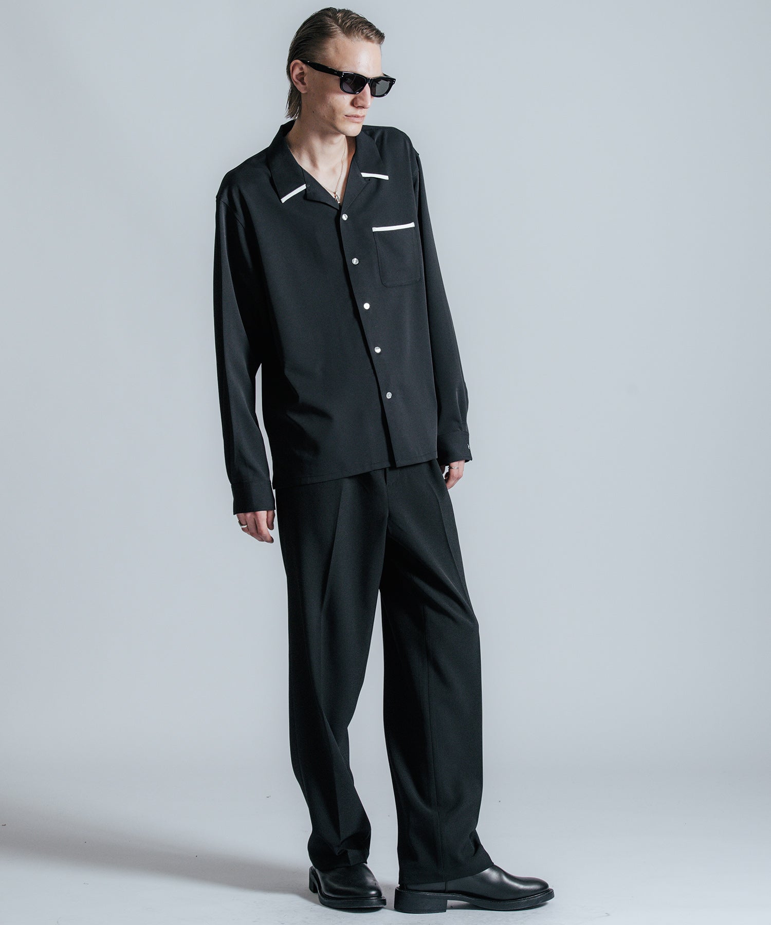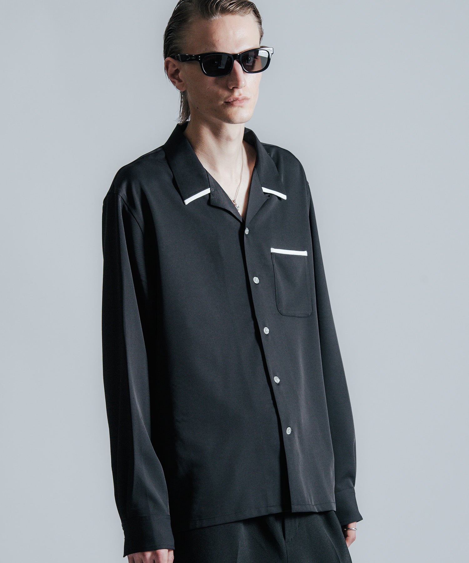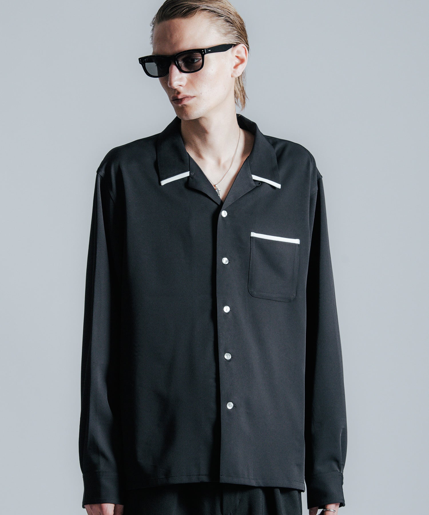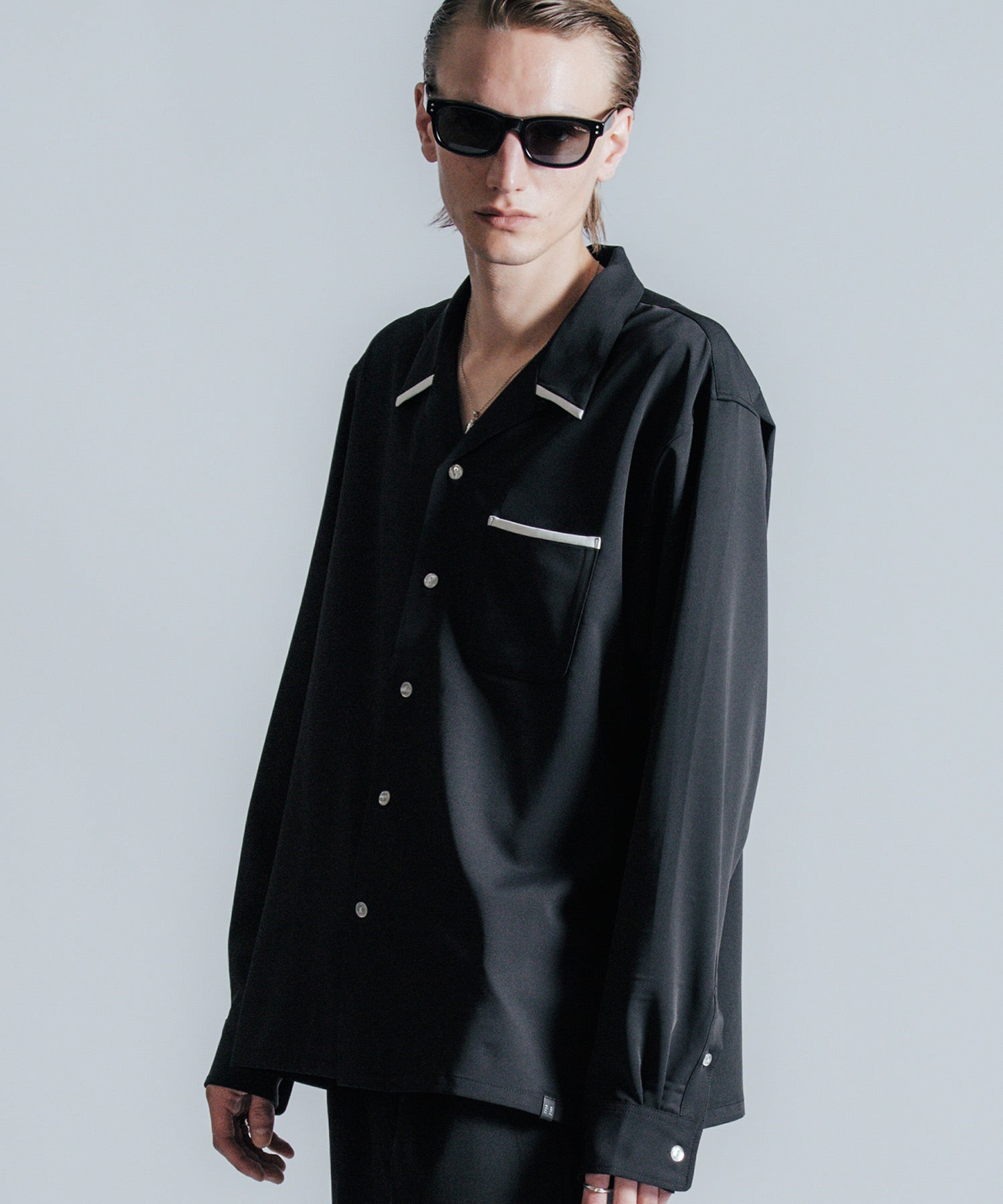 50年代のオープンカラーシャツをベースに、THE CRIMIEが独自の解釈で再構築した一着です。 バイカラーの配色やディテールにこだわりながら、今の時代に映えるバランスと空気感を追求しました。 軽やかなドレープ感を持つ素材は、優れた伸縮性と通気性を備えており、季節を問わず快適な着心地を実現します。 肌離れの良さとノンストレスな設計により、日常を少し上質に変える“軽やかなラグジュアリー”を体感いただけます。 襟先とポケット口に施されたさりげないバイカラーのアクセントが、シンプルな中に遊び心を添え、 現代的なモード感とクラシックのミックスを楽しめるデザインに仕上げています。 左裾と首元背面には、THE CRIMIEの哲学を象徴するレザー製ダイアログロゴワッペンを配置。 目立ちすぎず、静かに背中で語るディテールが、大人の品を引き立てます。 オリジナルの刻印入りボタンや縫製仕様まで、ブランドのクラフトマンシップを細部に凝縮。 スタイルの核としても、レイヤードのアクセントとしても活躍する一着です。