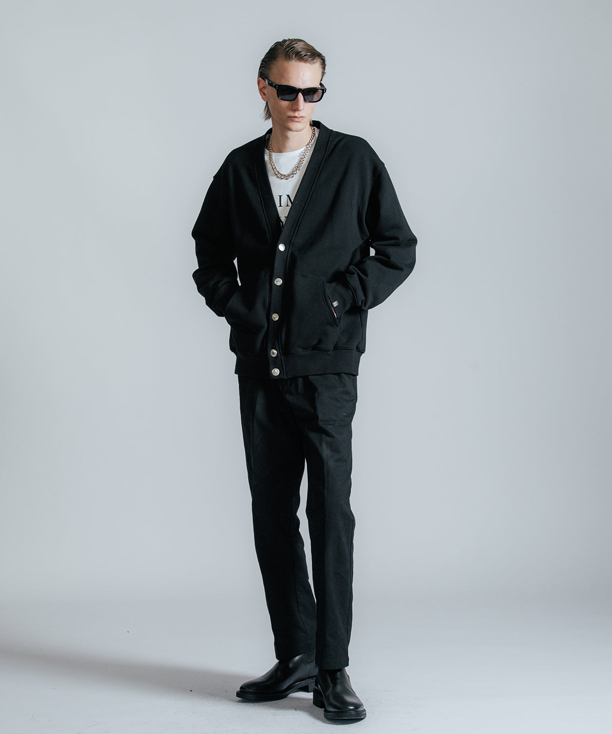 クラシックなカーディガンの品格に、スウェットのリラックス感を掛け合わせた一着。
