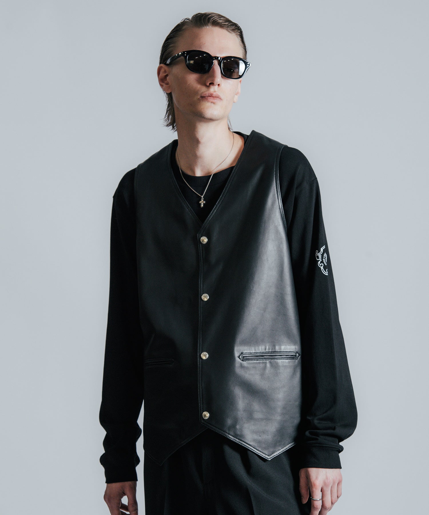スペイン産の上質なラムレザーを贅沢に使用した、ミニマルでエレガントなレザーベストです。