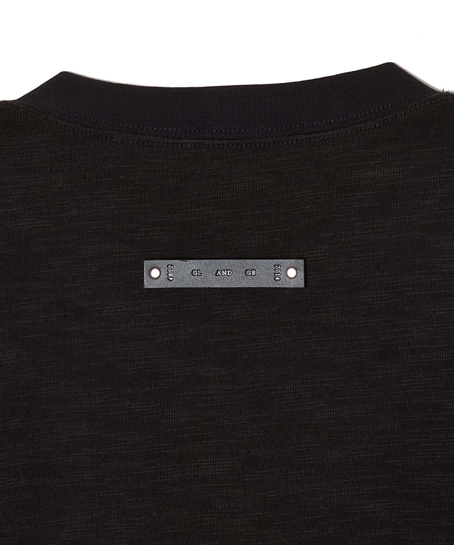 胸ポケットに静かに添えられたウォッシャブルレザータグは、本物の風合いを日常のルーティーンへと昇華させる象徴です。過剰な装飾を削ぎ落とし、最後に残るわずかな色気。それは、機能と美しさが表裏一体となったインダストリアルな輝きを放ちます。ヘンリーネックのボタンを外す一動作、袖を通す