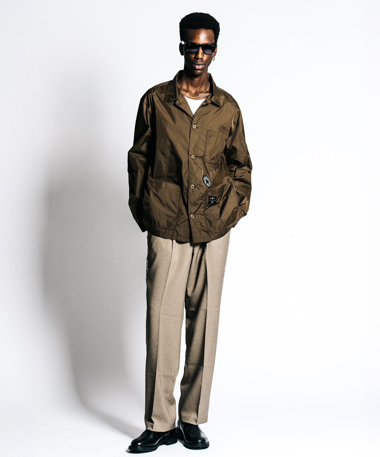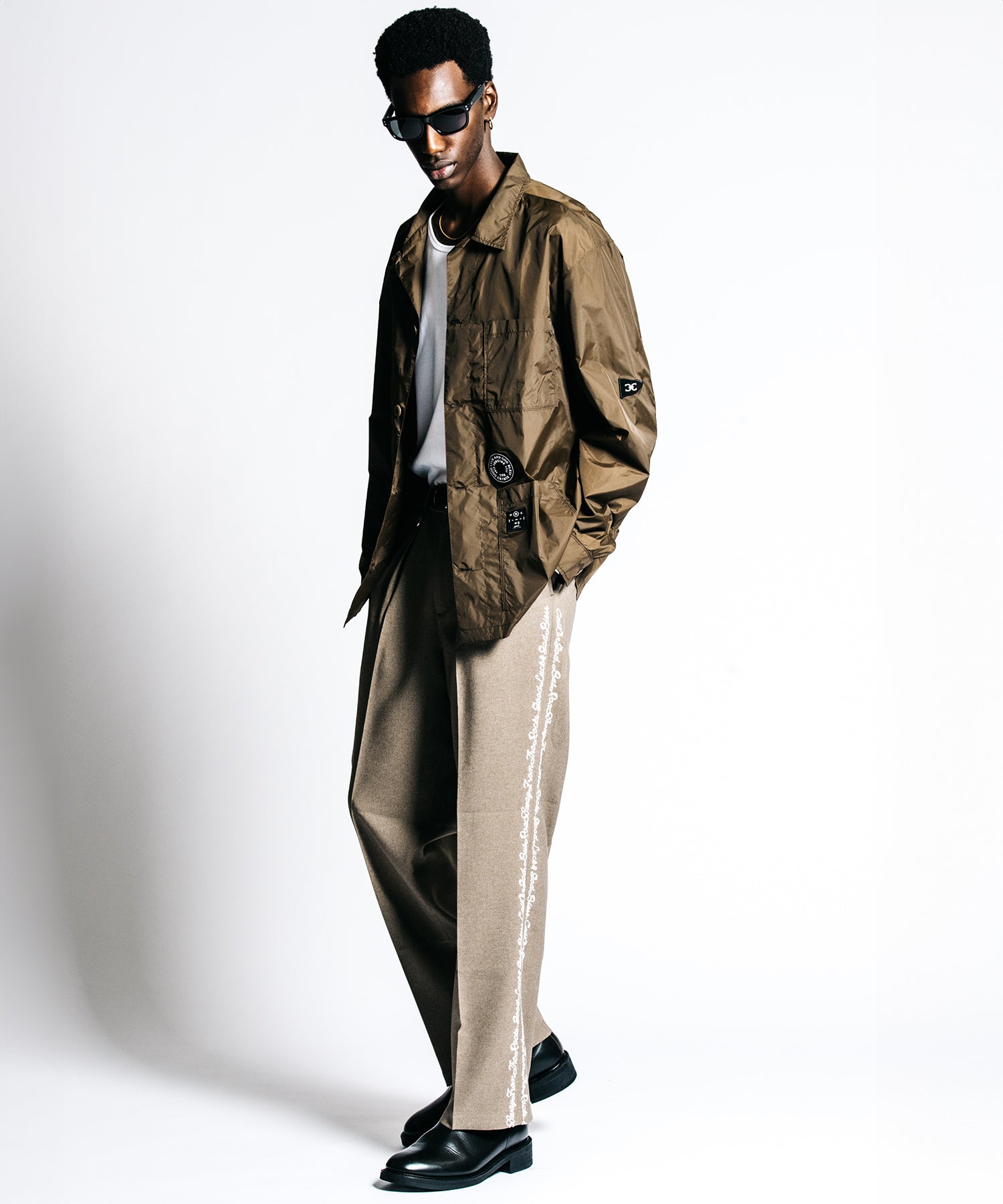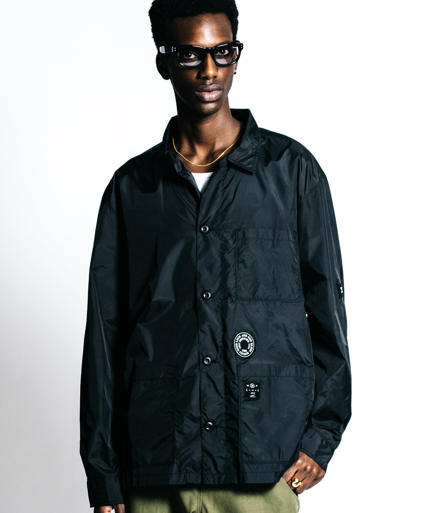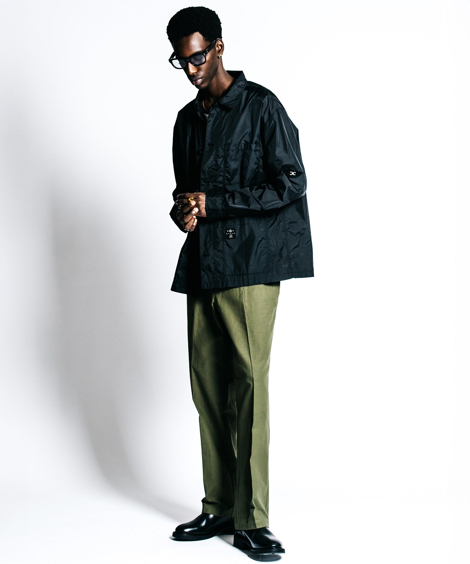 出発の瞬間、冷えたエンジンに熱を入れる朝の静寂。袖を通した瞬間に自らのスタイルを確信する高揚感が、多忙な日常をアクティブな活力へと変えていく。ミリタリーギアをビルドし直したかのような無骨な表情を持ちながら、その正体は驚くほど軽量で高密度なナイロン。空気を連れて歩くような軽快さは、既存の枠組みを理解した上で、自分だけのルールで時間を支配する大人の背中にこそ相応しい。明かりが彩る品のある陰影の中で、パッチワークロゴの立体感が個の際立ちを強調し、都会の静寂に馴染む躍動感を演出します。