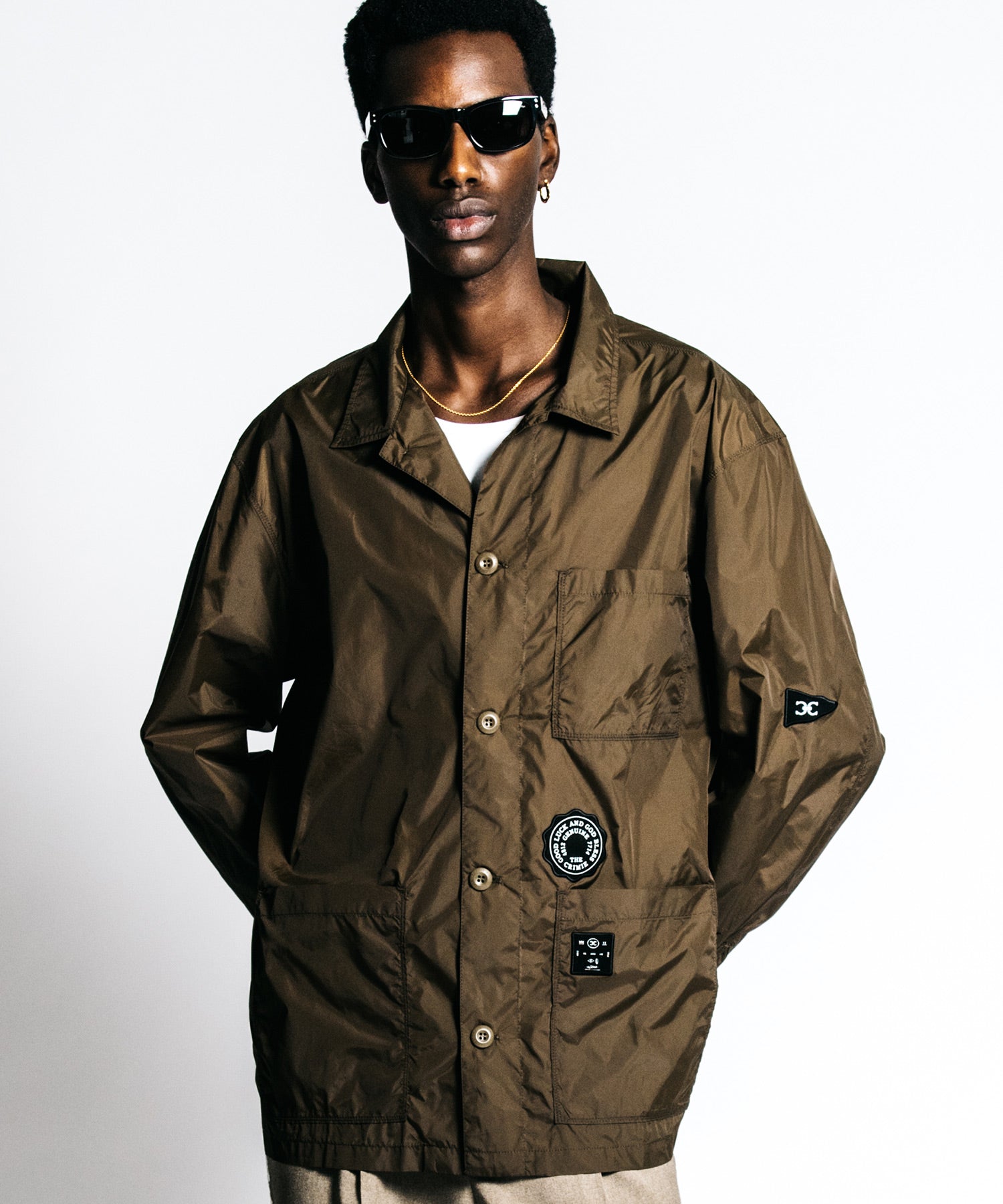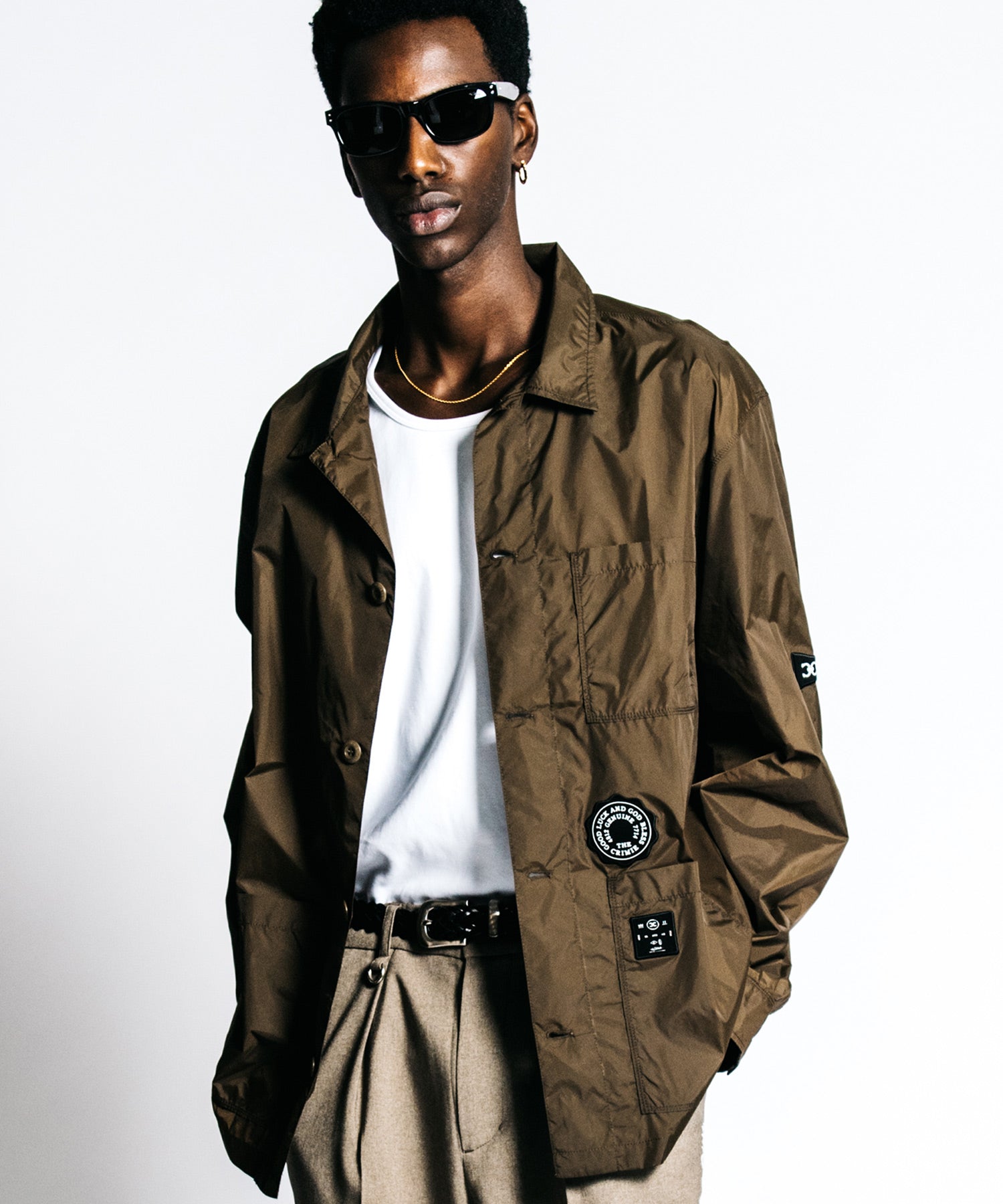 ・Design:ミリタリーの機能美を再構築し、オリジナルワッペンを配したエッジのある意匠